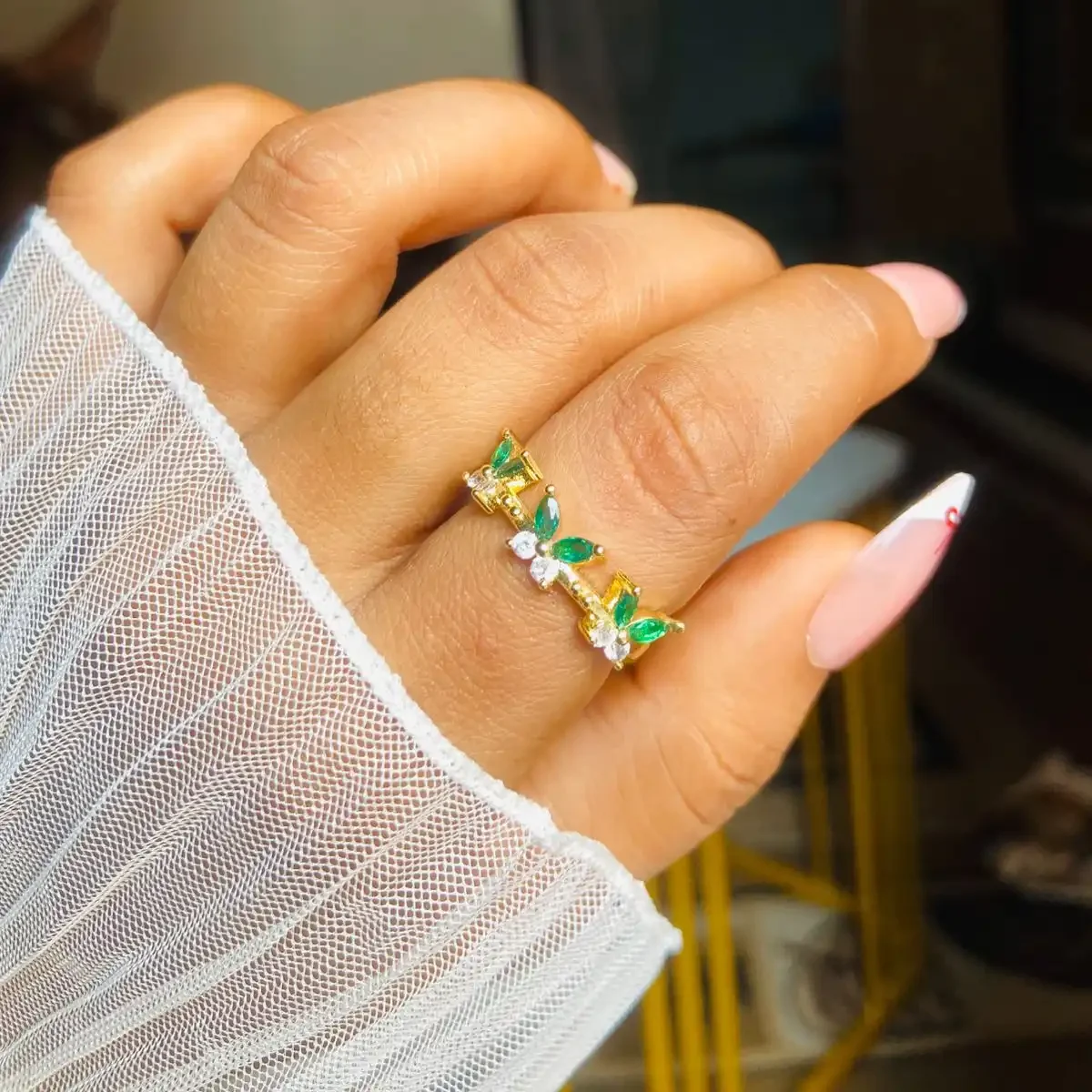 Butterfly shaped emerald ring | Beautiful emerald ring for women | Anti tarnish ring | adjustable ring