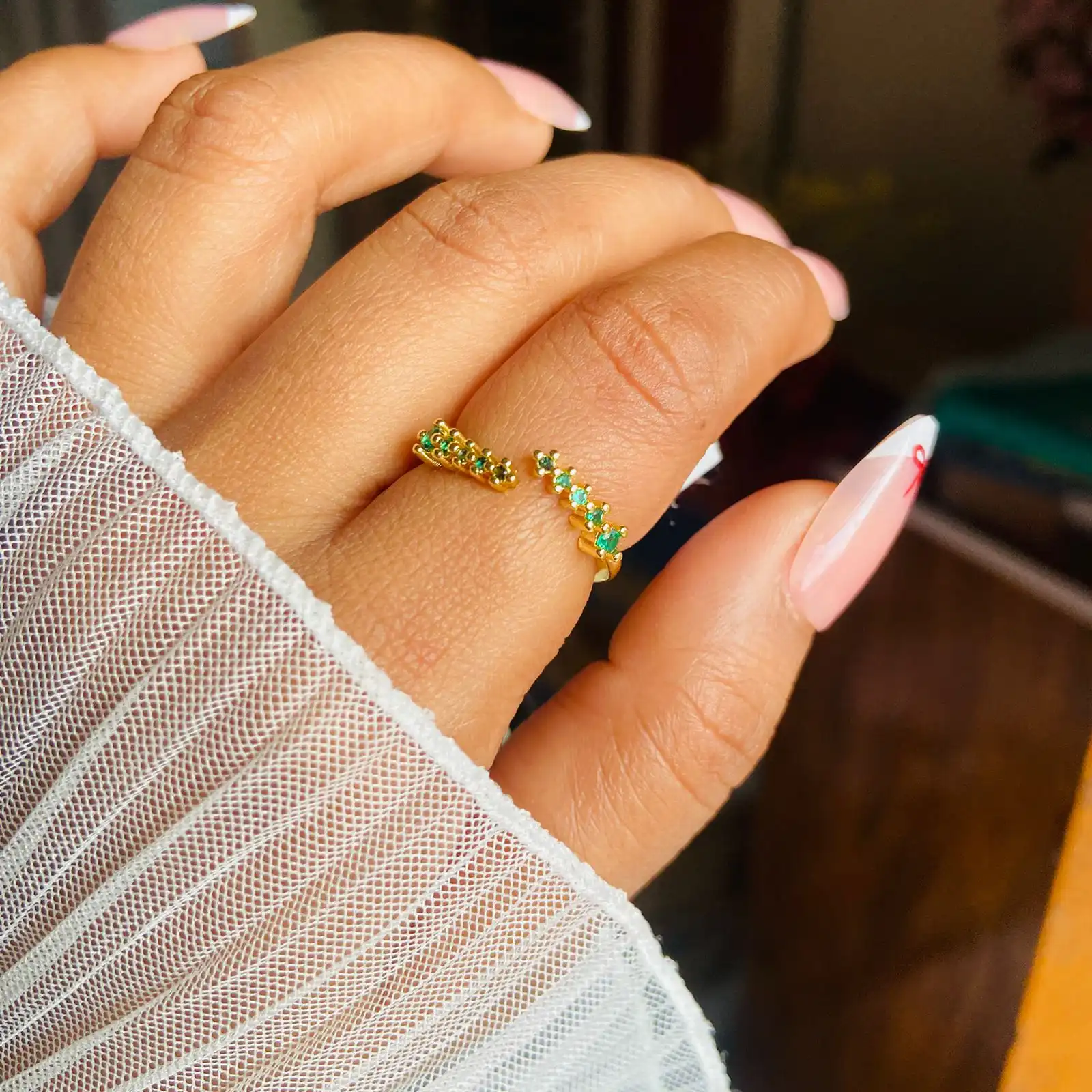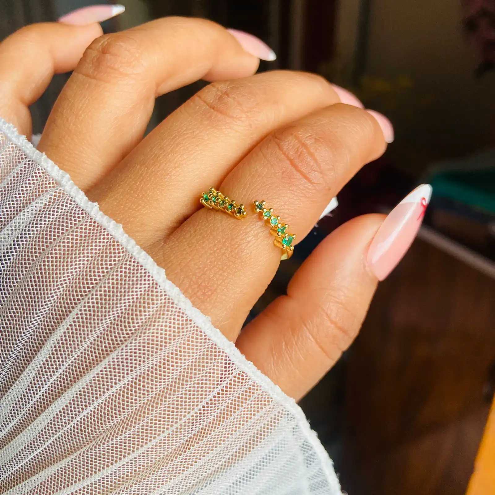 Delicate emerald green stone studded ring