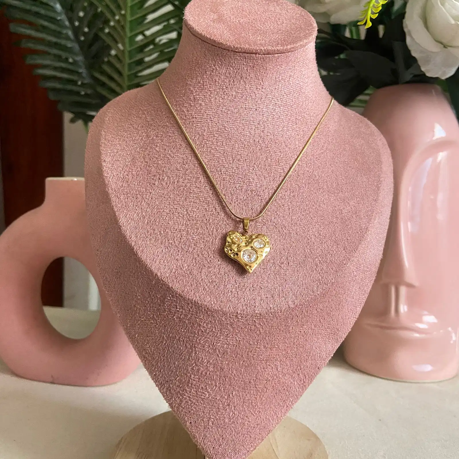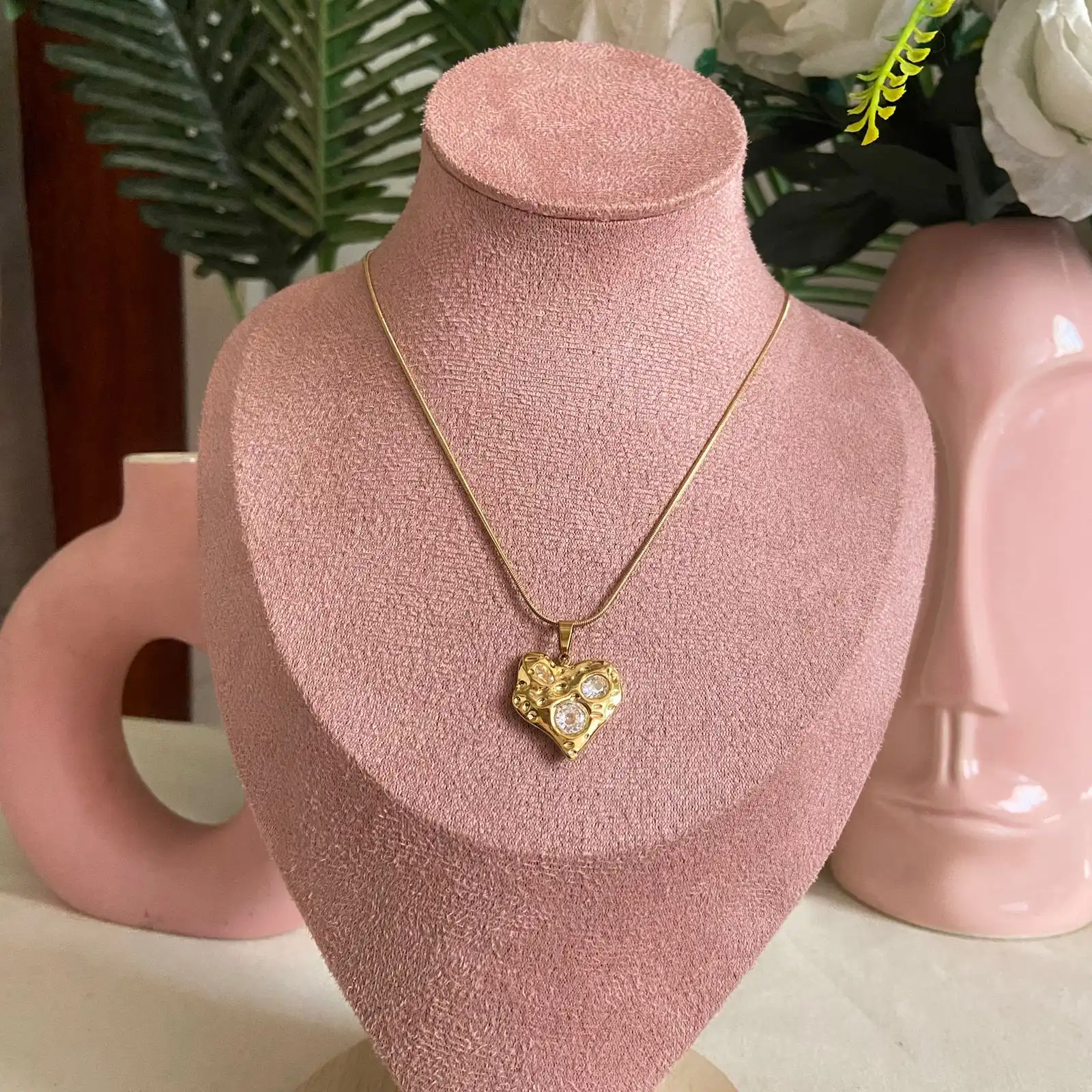 Heart shaped stone studded anti-tarnish chain pendent